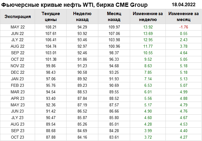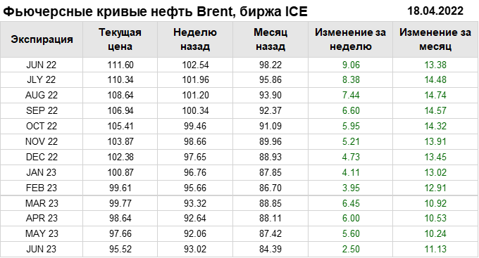 Нефть. Фьючерсные кривые на 18 апреля 2022