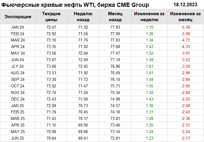 Нефть. Фьючерсные кривые на 18 декабря 2023