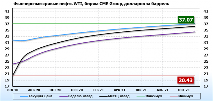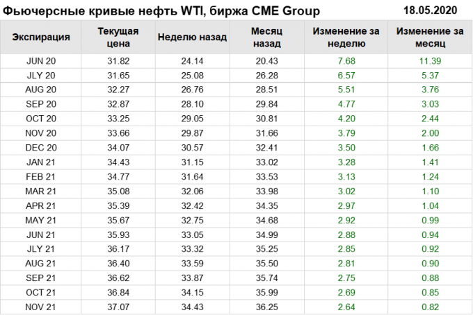 Нефть. Фьючерсные кривые на 18 мая 2020