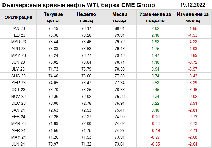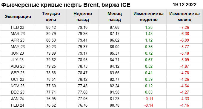 Нефть. Фьючерсные кривые на 19 декабря 2022
