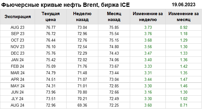 Нефть. Фьючерсные кривые на 19 июня 2023