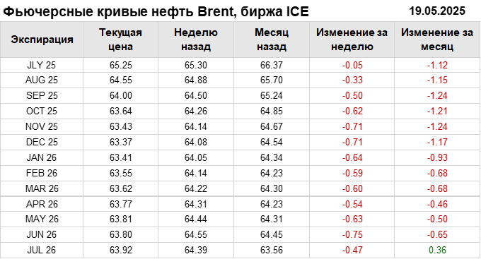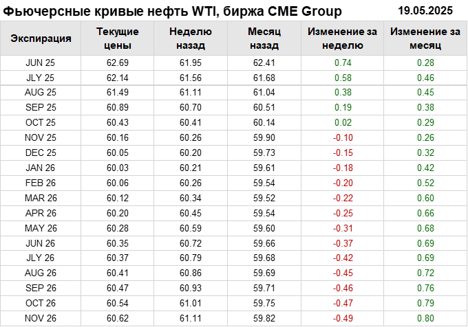 Нефть. Фьючерсные кривые на 19 мая 2025