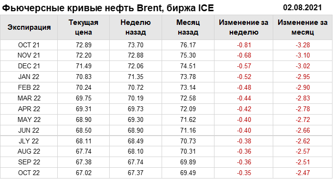 Нефть. Фьючерсные кривые на 2 августа 2021
