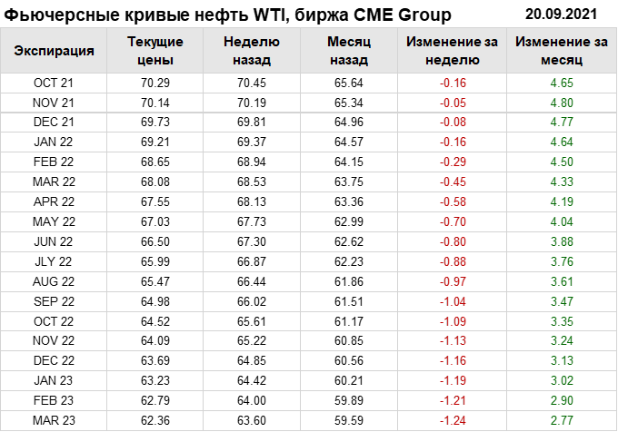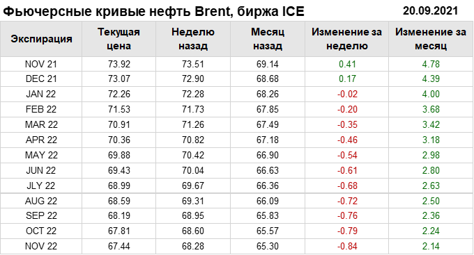 Нефть. Фьючерсные кривые на 20 сентября 2021