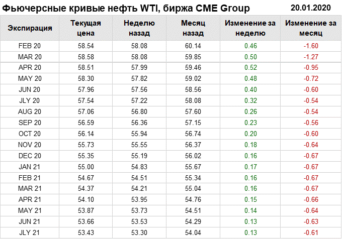 Нефть. Фьючерсные кривые на 20 января 2020