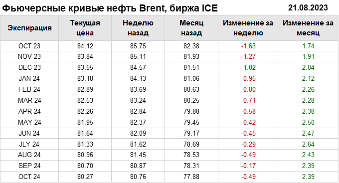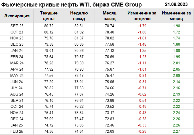 Нефть. Фьючерсные кривые на 21 августа 2023