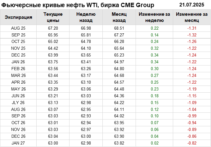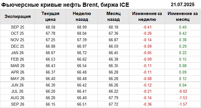 Нефть. Фьючерсные кривые на 21 июля 2025