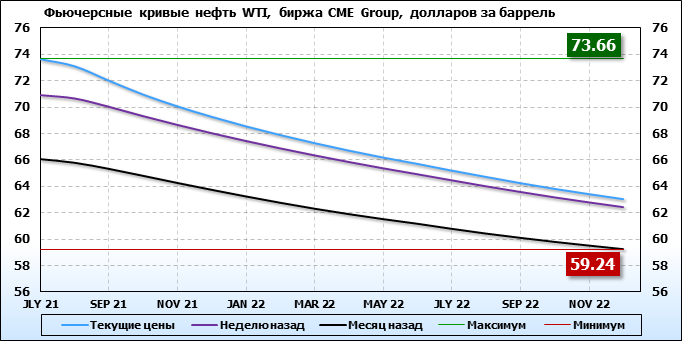 Нефть. Фьючерсные кривые на 21 июня 2021