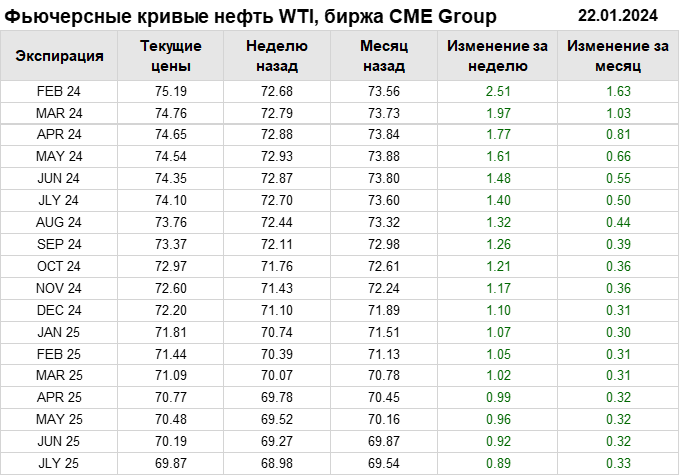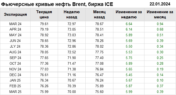 Нефть. Фьючерсные кривые на 22 января 2024