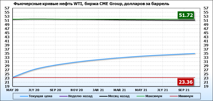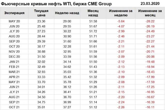 Нефть. Фьючерсные кривые на 23 марта 2020
