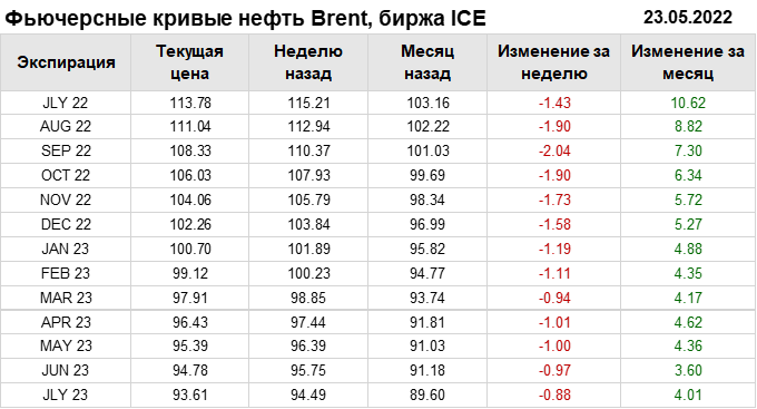 Нефть. Фьючерсные кривые на 23 мая 2022