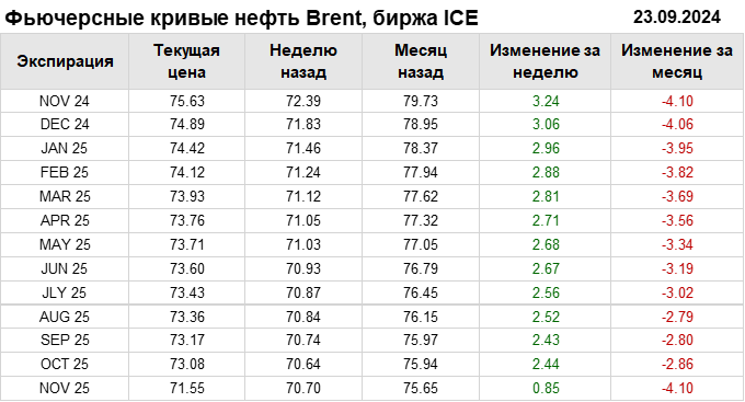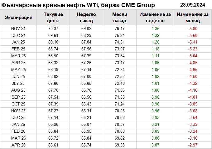 Нефть. Фьючерсные кривые на 23 сентября 2024