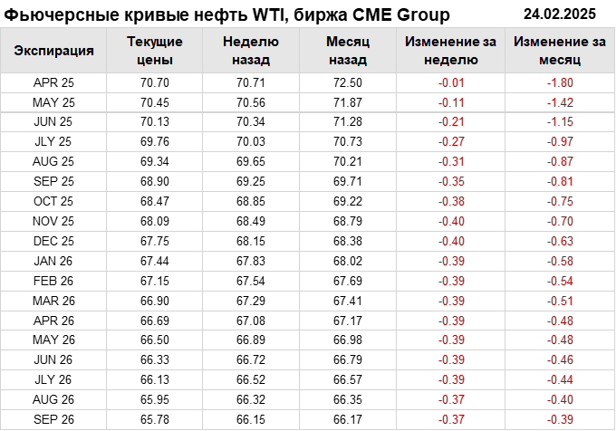 Нефть. Фьючерсные кривые на 24 февраля 2025