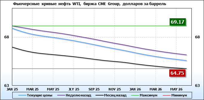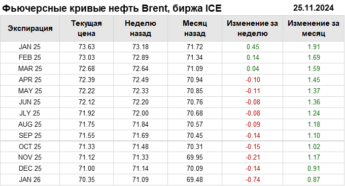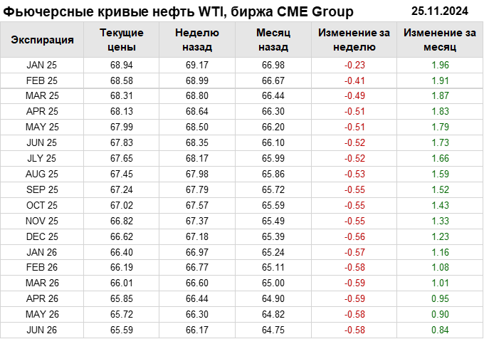 Нефть. Фьючерсные кривые на 25 ноября 2024