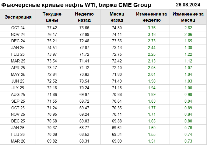 Нефть. Фьючерсные кривые на 26 августа 2024