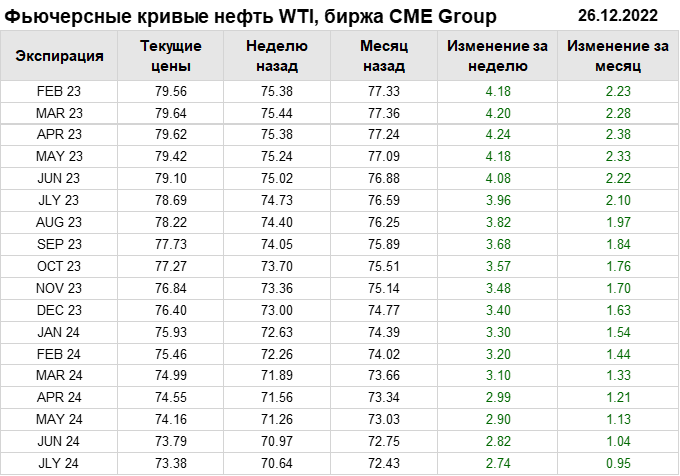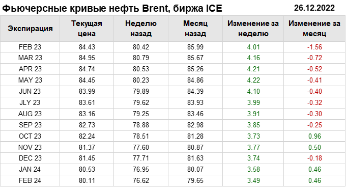 Нефть. Фьючерсные кривые на 26 декабря 2022