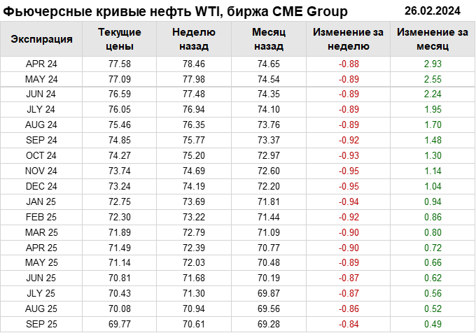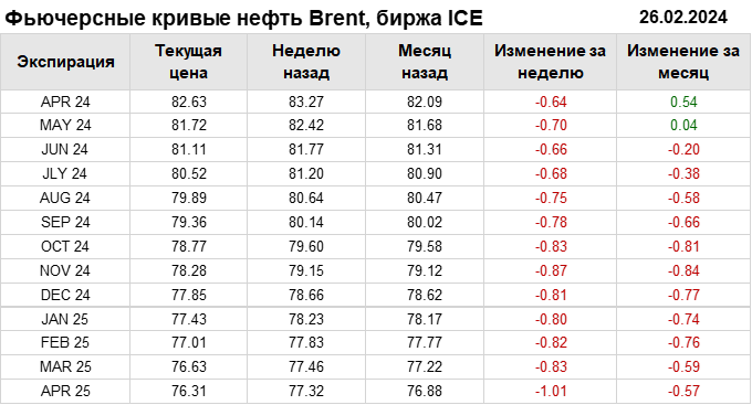 Нефть. Фьючерсные кривые на 26 февраля 2024