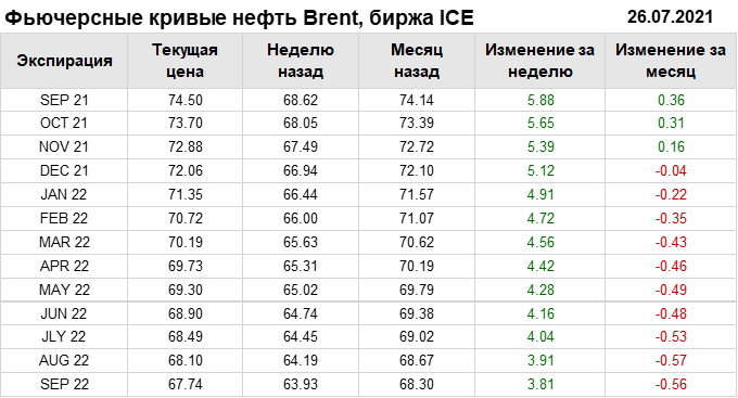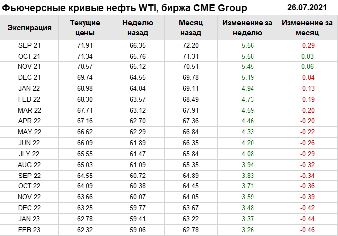 Нефть. Фьючерсные кривые на 26 июля 2021