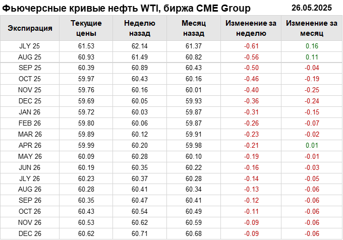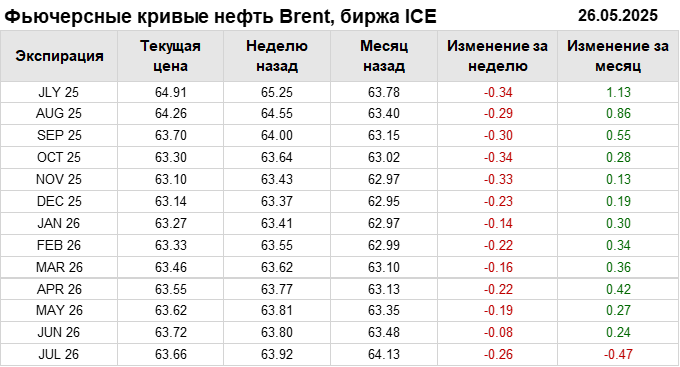 Нефть. Фьючерсные кривые на 26 мая 2025