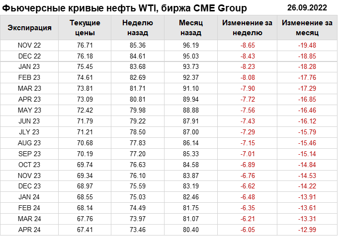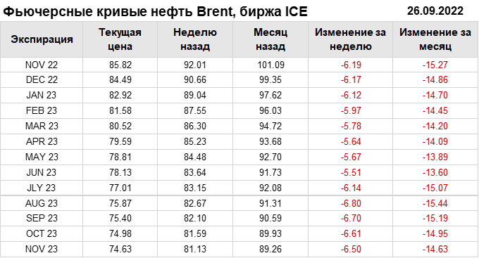 Нефть. Фьючерсные кривые на 26 сентября 2022