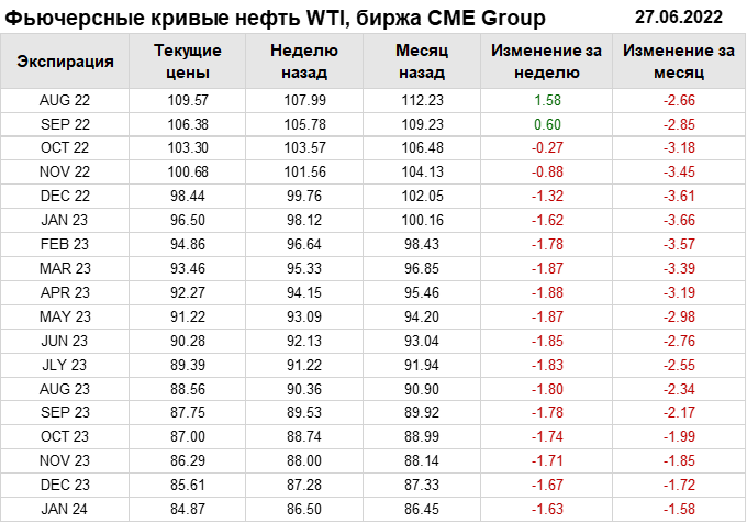 Нефть. Фьючерсные кривые на 27 июня 2022