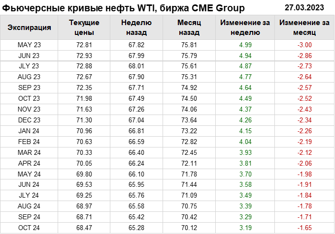 Нефть. Фьючерсные кривые на 27 марта 2023