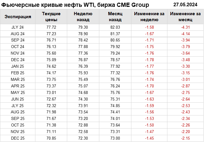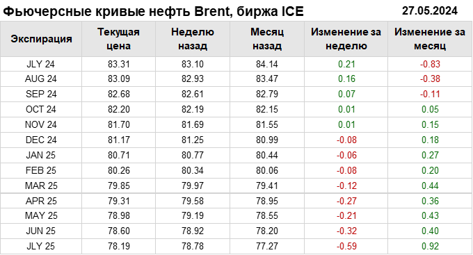 Нефть. Фьючерсные кривые на 27 мая 2024