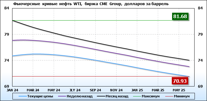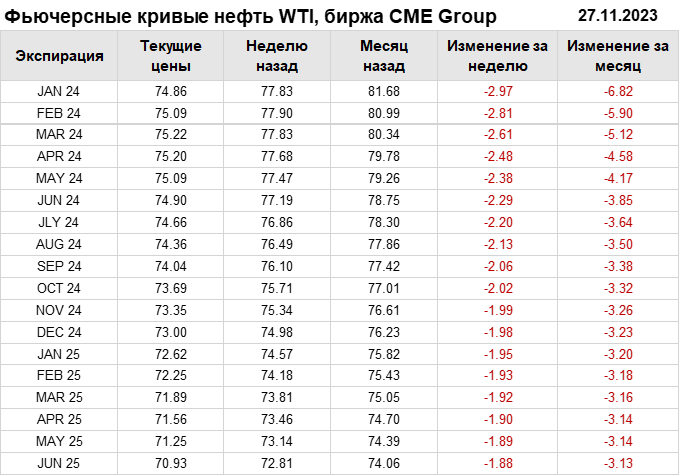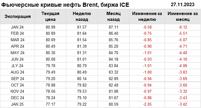 Нефть. Фьючерсные кривые на 27 ноября 2023