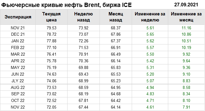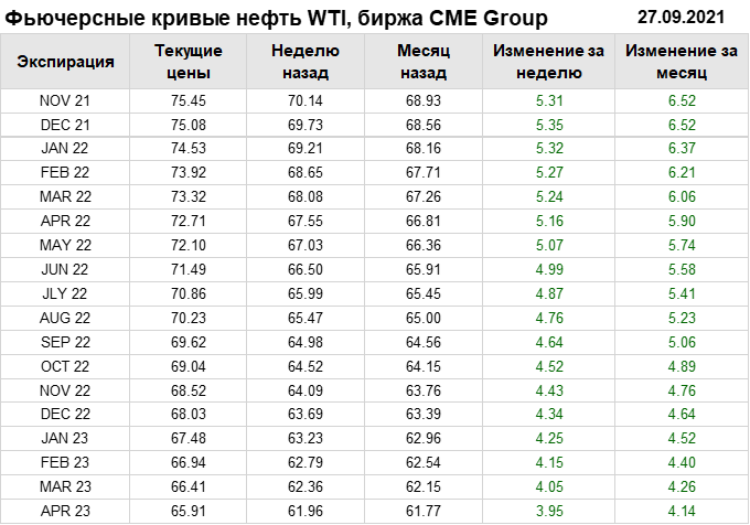 Нефть. Фьючерсные кривые на 27 сентября 2021