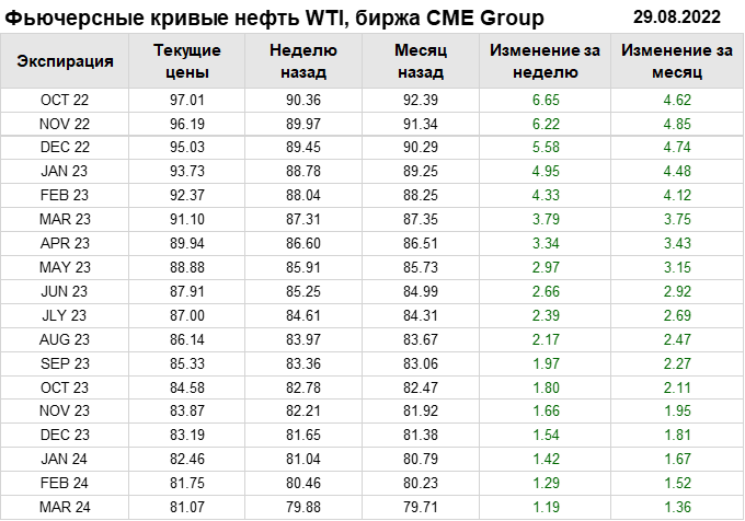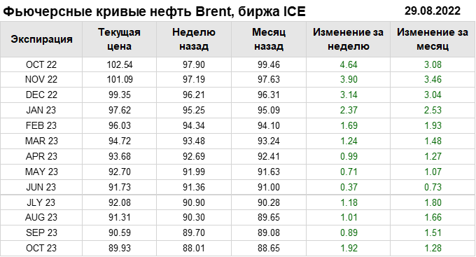 Нефть. Фьючерсные кривые на 29 августа 2022