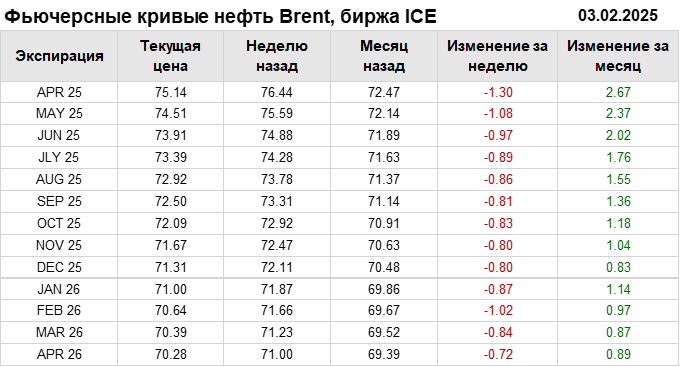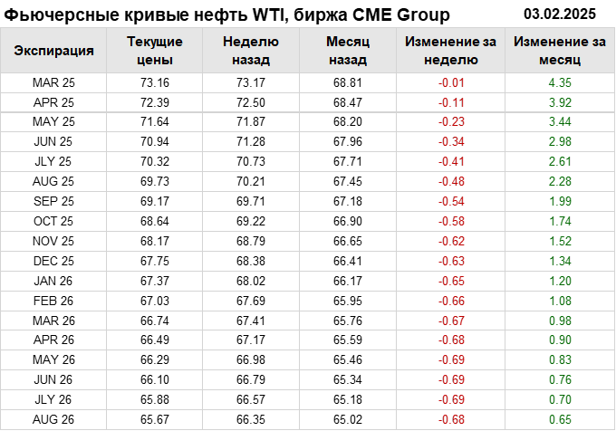 Нефть. Фьючерсные кривые на 3 февраля 2025