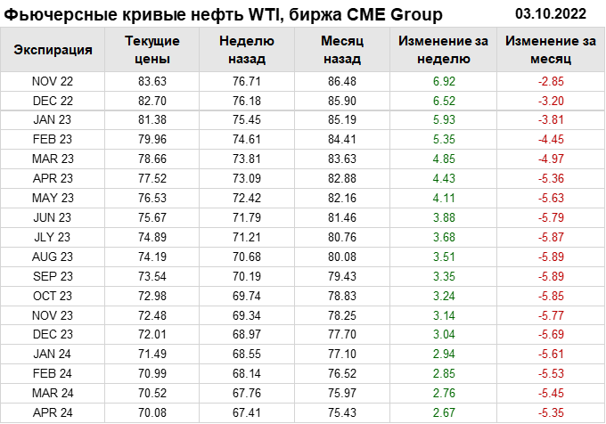 Нефть. Фьючерсные кривые на 3 октября 2022