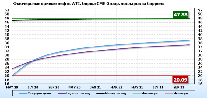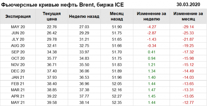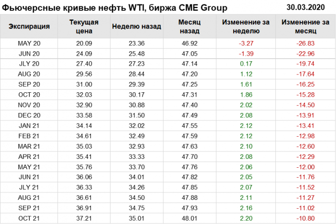 Нефть. Фьючерсные кривые на 30 марта 2020