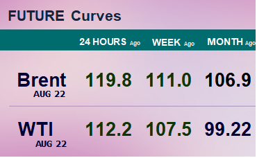 На 30.05.22 стоимость нефти марки Brent на бирже ICE по контракту JLY 22 составила 123.82 долларов за баррель. За прошедшую неделю стоимость нефти марки Brent выросла на 10.04 $/баррель. Как мы видим на графике, фьючерсная кривая имеет периоды, когда более дальний фьючерс дешевле ближнего. Состояние бэквардации наблюдаем на следующих контрактах: AUG 22; SEP 22; OCT 22; NOV 22; DEC 22; JAN 23; FEB 23; MAR 23; APR 23; ; JUN 23; JLY 23. Таким образом, трейдеры предполагают, что возможно превалирование предложения над спросом в указанные периоды, если рынок будет находиться на данных ценовых уровнях.