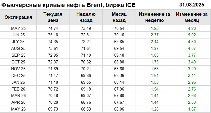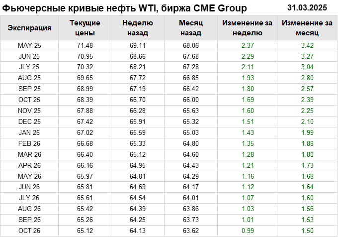 Нефть. Фьючерсные кривые на 31 марта 2025