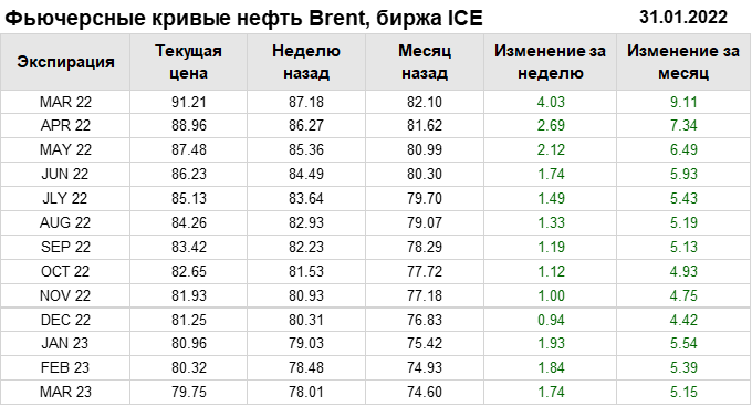 Нефть. Фьючерсные кривые на 31 января 2022
