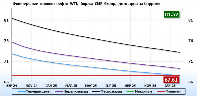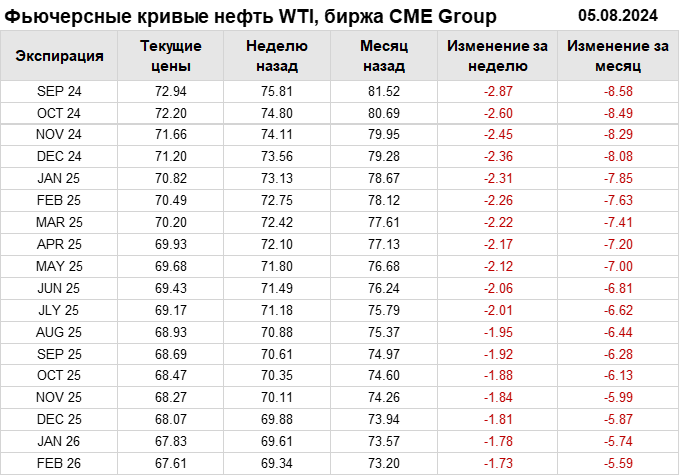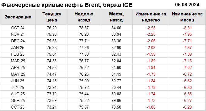 Нефть. Фьючерсные кривые на 5 августа 2024