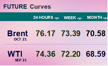 На 05.07.21 стоимость нефти марки Brent на бирже ICE по контракту SEP 21 составила 77.16 доллара за баррель. За прошедшую неделю стоимость нефти марки Brent выросла на 3.02 $/баррель. Как мы видим на графике, фьючерсная кривая имеет периоды, когда более дальний фьючерс дешевле ближнего. Состояние бэквардации наблюдаем на следующих контрактах: OCT 21; NOV 21; DEC 21; JAN 22; FEB 22; MAR 22; APR 22; MAY 22; JUN 22; JLY 22; AUG 22; SEP 22. Таким образом, трейдеры предполагают, что возможно превалирование предложения над спросом в указанные периоды, если рынок будет находиться на данных ценовых уровнях.