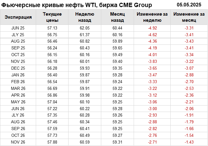 Нефть. Фьючерсные кривые на 5 мая 2025