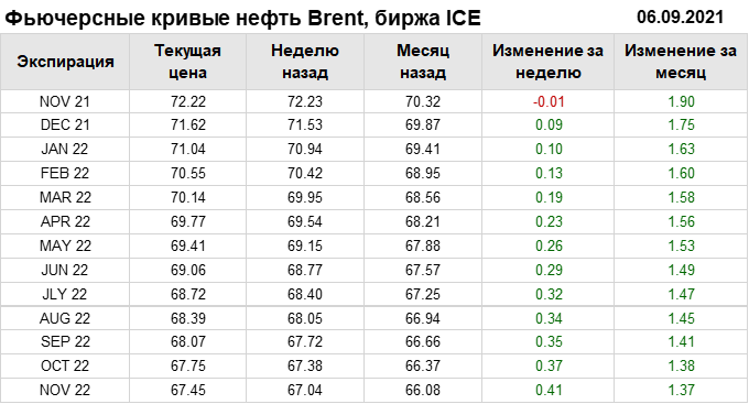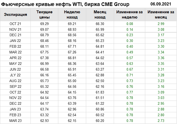 Нефть. Фьючерсные кривые на 6 сентября 2021