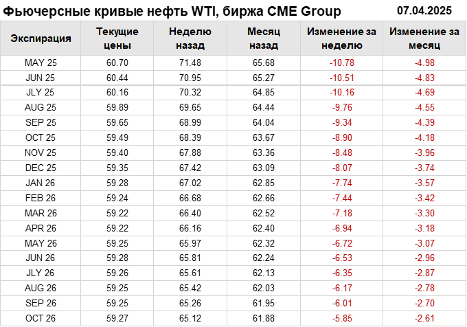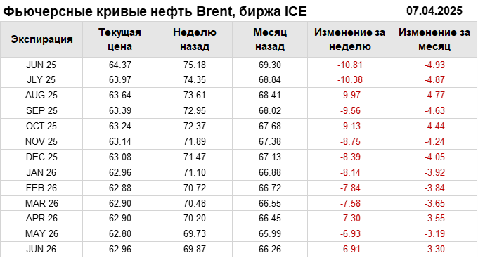 Нефть. Фьючерсные кривые на 7 апреля 2025