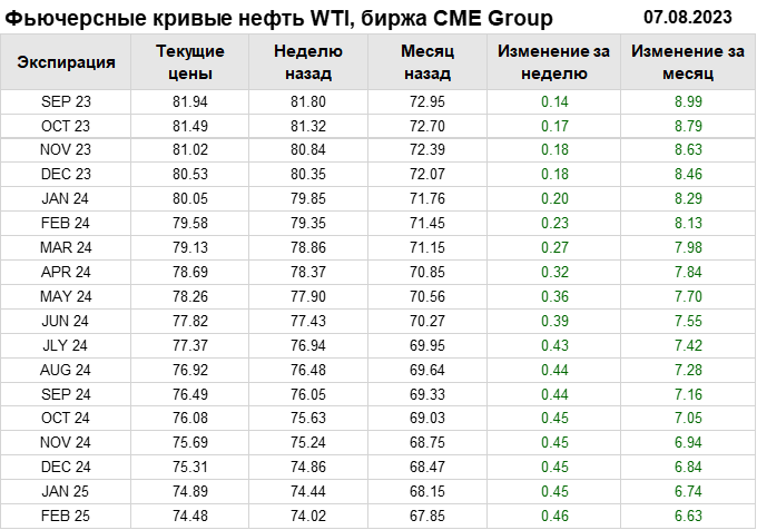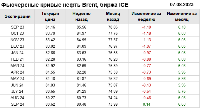 Нефть. Фьючерсные кривые на 7 августа 2023