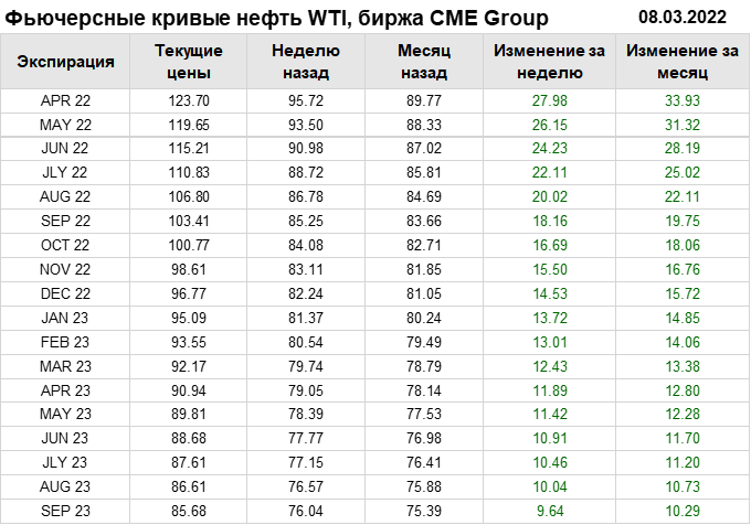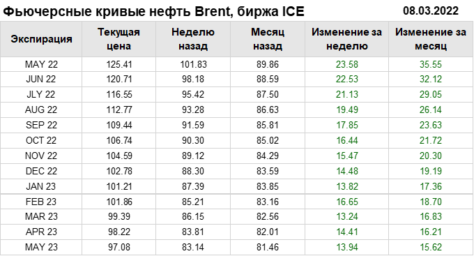 Нефть. Фьючерсные кривые на 8 марта 2022