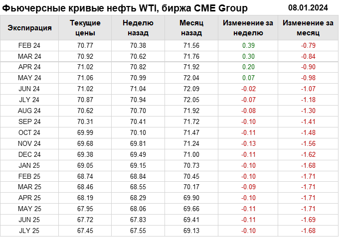 Нефть. Фьючерсные кривые на 8 января 2024