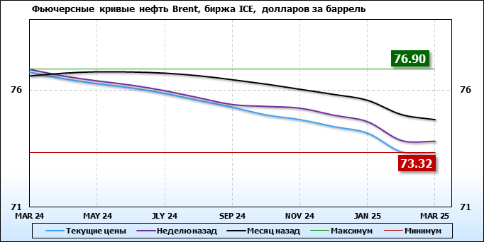 На 08.01.24 стоимость нефти марки Brent на бирже ICE по контракту MAR 24 составила 76.77 доллара за баррель. За прошедшую неделю стоимость нефти марки Brent  упала на 0.13 $/баррель. Как мы видим на графике, фьючерсная кривая имеет периоды, когда более дальний фьючерс дешевле ближнего. Состояние бэквардации наблюдаем на следующих контрактах: APR 24; MAY 24; JUN 24; JLY 24; AUG 24; SEP 24; OCT 24; NOV 24; DEC 24; JAN 25; FEB 25; MAR 25. Таким образом, трейдеры предполагают, что возможно превалирование предложения над спросом в указанные периоды, если рынок будет находиться на данных ценовых уровнях.