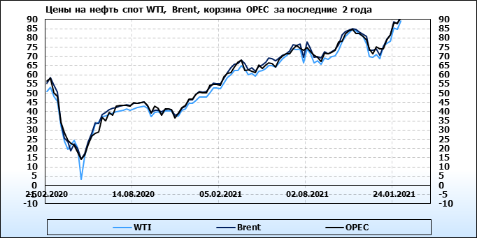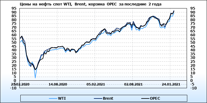 Нефть. Мировые цены спот по сортам и базисам. Данные на 03.02.2022