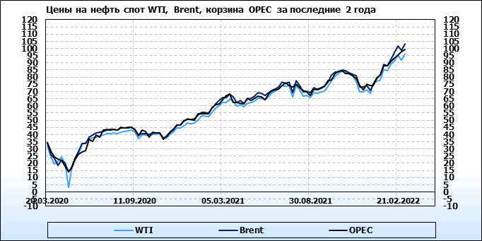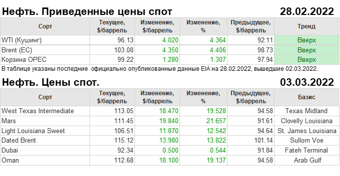 Нефть. Мировые цены спот по сортам и базисам. Данные на 03.03.2022
