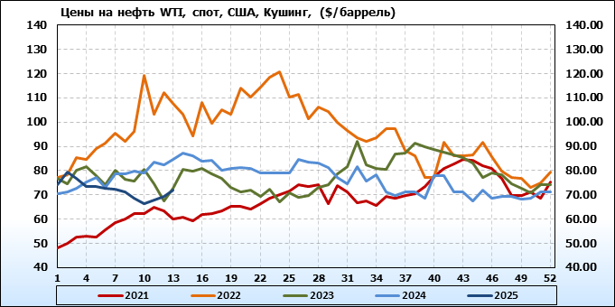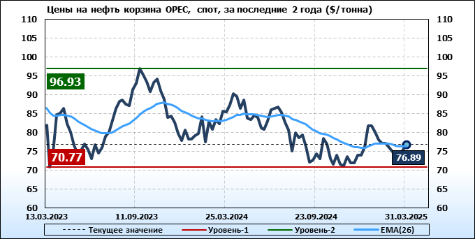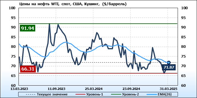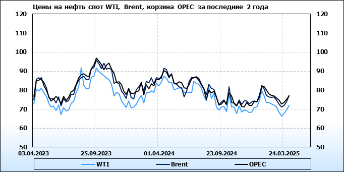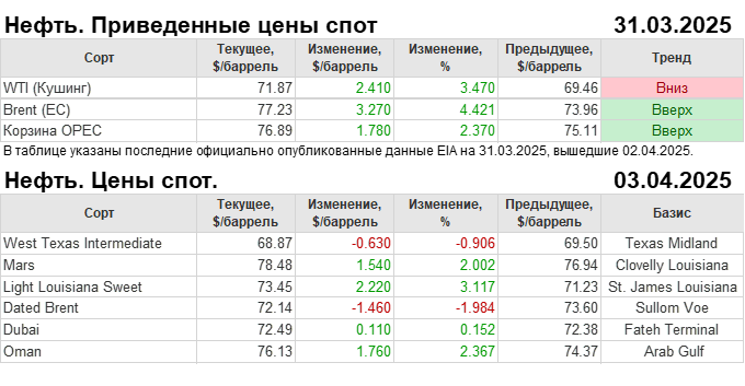 Нефть. Мировые цены спот по сортам и базисам. Данные на 03.04.2025