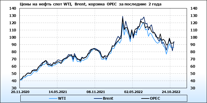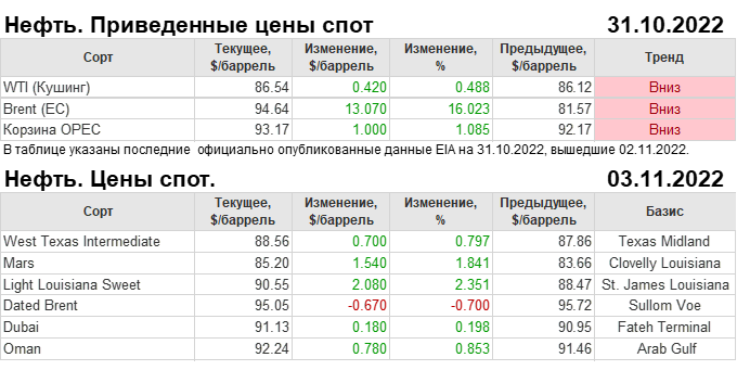 Нефть. Мировые цены спот по сортам и базисам. Данные на 03.11.2022