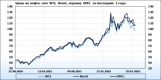 Нефть. Мировые цены спот по сортам и базисам. Данные на 04.08.2022